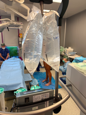 Vstupné vyšetrenie začalo krátko po príchode. Zaviedli mi kanylu a asistent kliniky Robert mi potom fixkou vyznačil oblasti na tele, ktoré sa mali operovať. Pomocou ultrazvuku vopred zistili, koľko tuku bude potrebné odstrániť.